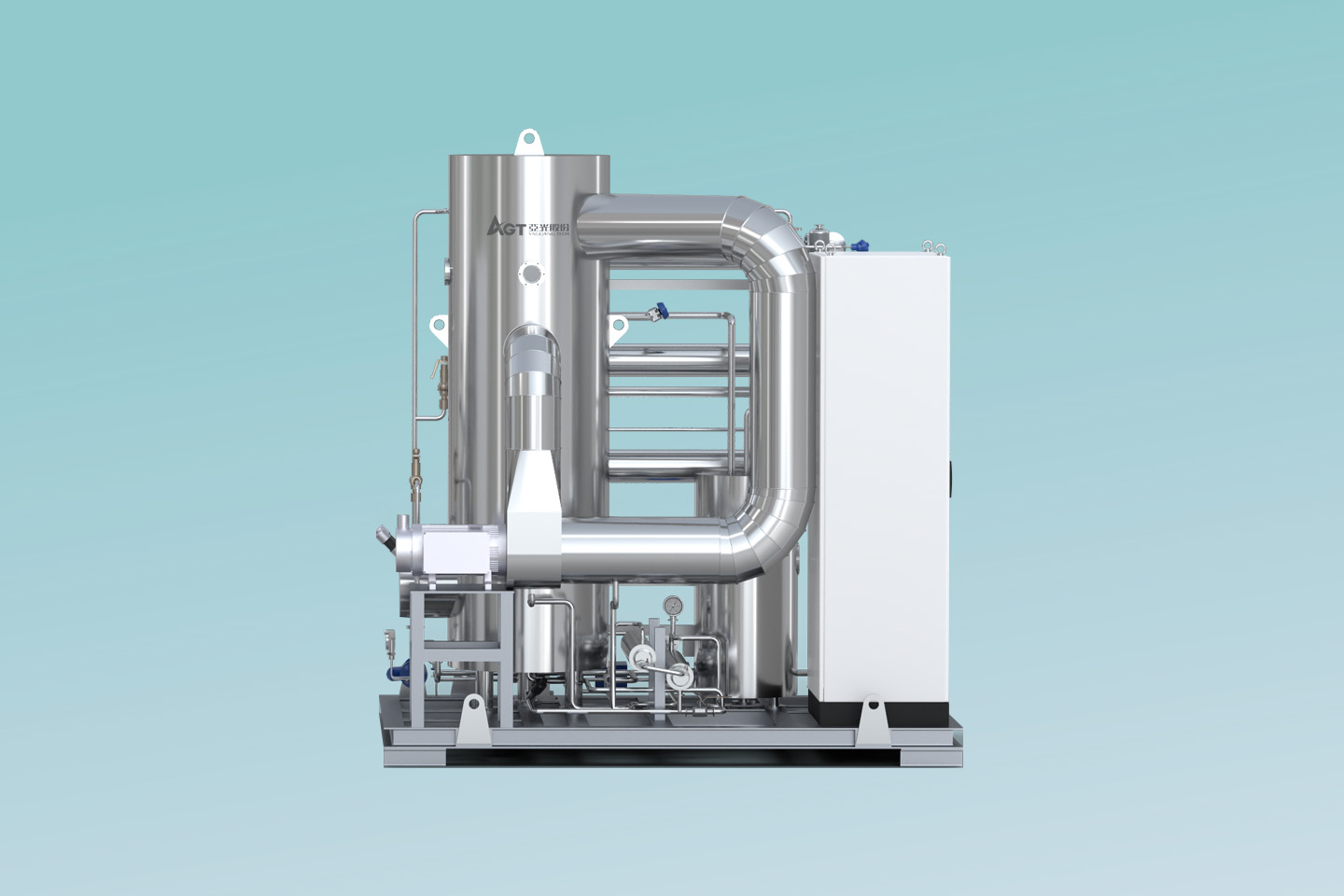 MVR熱泵精餾系統(tǒng)以高效旋轉(zhuǎn)精餾床為基礎(chǔ),利用離心力場代替重力場,強化相與相之間的相對速度和相互接觸,通過強化傳質(zhì)傳熱來提高分離效率縮小設(shè)備體積。 通過在系統(tǒng)中引入適用于小流量、大壓比的螺桿式蒸汽壓縮機,即可實現(xiàn)MVR循環(huán)熱泵精餾。